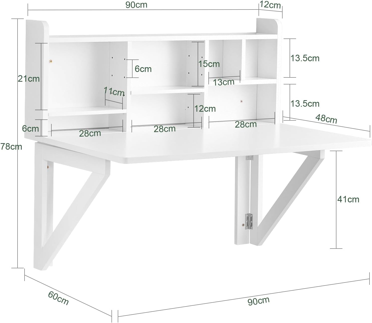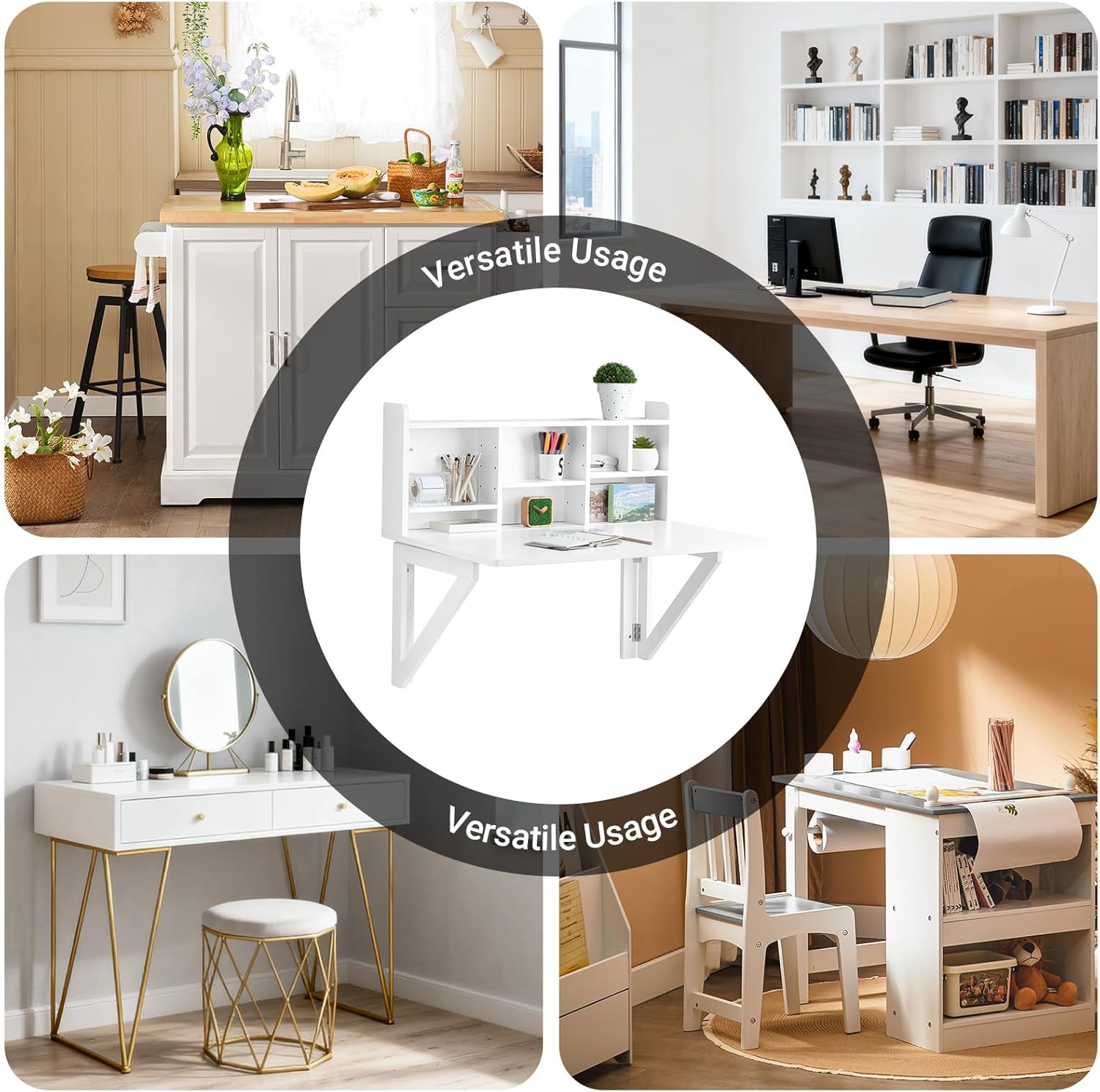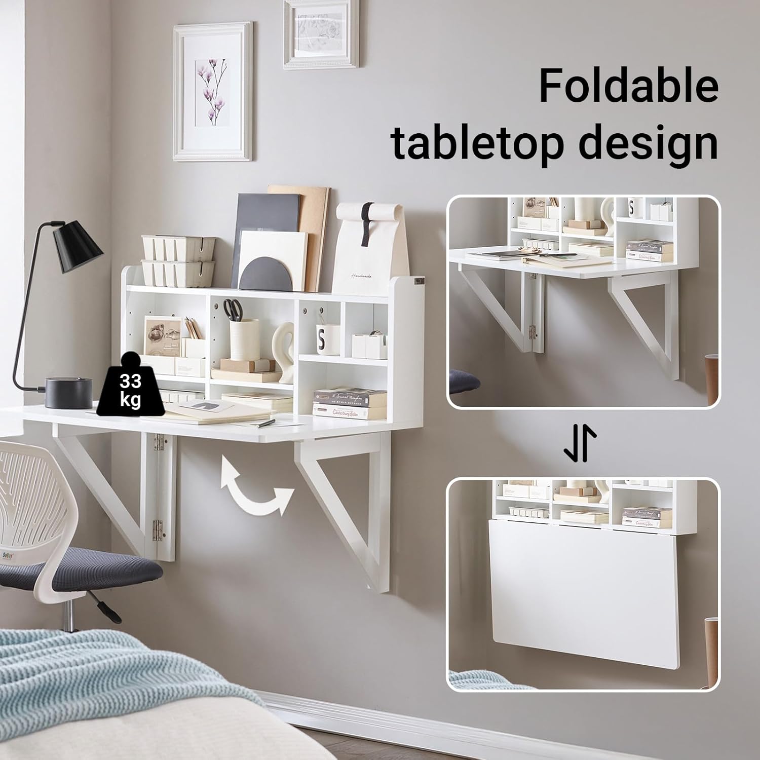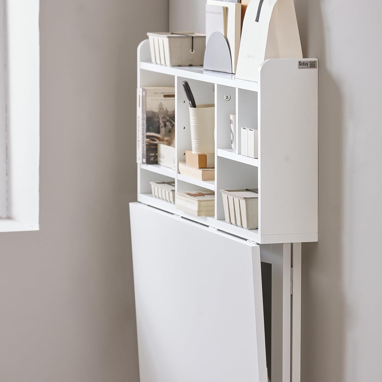 The Haotian FWT07-II-W Wall Mounted Drop-Leaf Table Desk is a smart space-saving solution designed for small apartments, home offices, or compact rooms. This wall-mounted folding desk features a drop-leaf tabletop and integrated adjustable shelves, providing both workspace and storage while keeping floor space clear. Its durable MDF construction and modern minimalist design make it a practical and stylish addition to any room.
